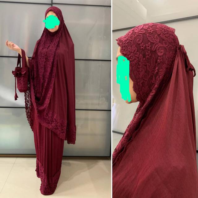 KHADEEJAH Mukena Zara silk premium full lace Mukena renda Sumber : shopee.co.id